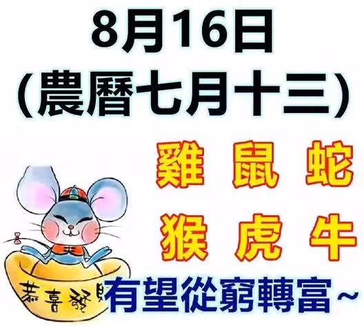 8月16日生肖運勢_雞、鼠、蛇大吉