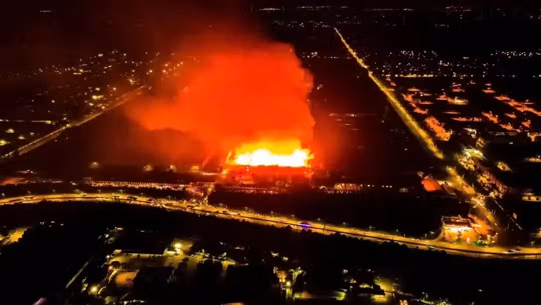 多名保安發現火勢並試圖撲滅,但未能成功。由於倉庫內存放著許多布料、皮革等易燃物品,這些材料都屬於易燃物,瞬間,大火覆蓋了整個工廠,面積達萬多平方米,從上往下看就像一片火海。停在工廠附近的幾輛卡車也著火了,員工們迅速將火撲滅並駛出。