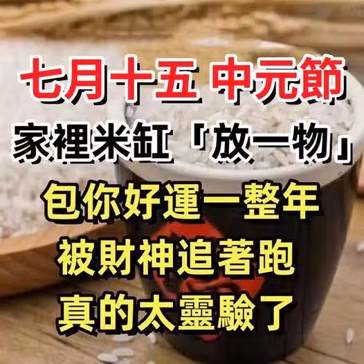 七月十五中元節,家裡米缸「放一物」包你好運旺一整年! 被財神追著跑,真的太靈驗了!