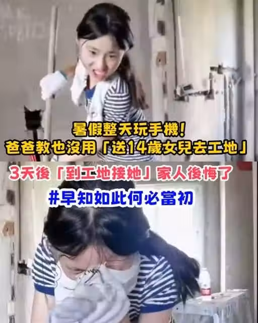 整天玩手機!爸爸教也沒用「送14歲女兒去工地」 3天後「到工地接她」家人後悔了