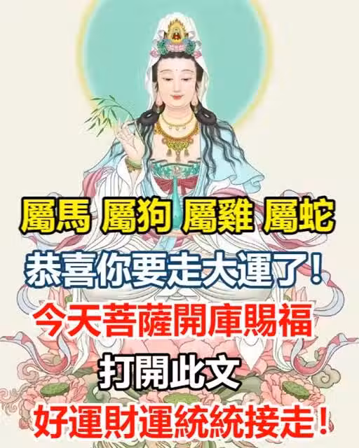 【屬馬女 屬狗女 屬雞女 屬蛇女】恭喜你要走大運了!今天菩薩開庫賜福,打開此文好運財運統統都接走!