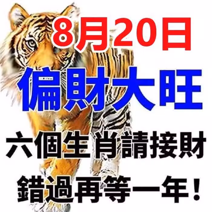 8月20號偏財大旺,六個生肖請接財!錯過再等一年!