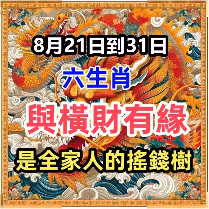 8月21日到31日與橫財有緣的生肖,是全家人的搖錢樹快來接