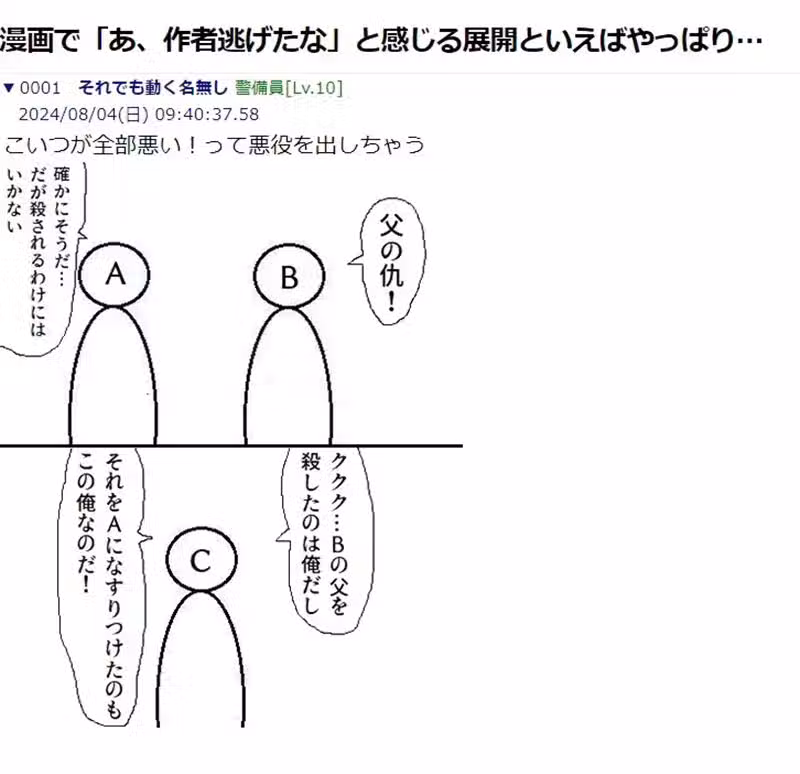 日本5ch討論區最近出現了這篇熱門討論串,發文網友藉由插畫,吐槽了他最討厭的一種漫畫劇情……