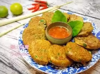 養清素漿是新款的素食材,可塑性甚高,只要稍加變化,便能輕易做出具泰式風味的魚餅。