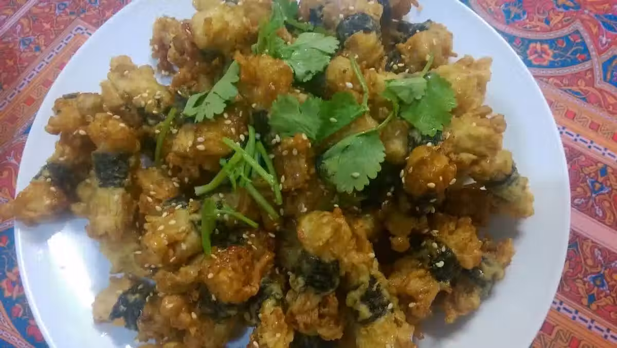 金針菇除了煮湯.清炒...也可以來點不一樣的變化....這道素排骨讓家理不愛吃金針菇的孩子....也吃得津津有味喔!! 過年來了好多客人.炸個5-6包金針菇....吃光光喔!!