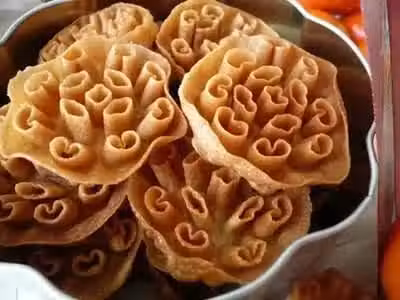 2.在鍋中燒熱油,把模型放入油中燒熱後取出,稍待片刻大概10秒後(避免模型太燙,沾在模具的麵糊會立刻熟透,這樣會造成麵糊在還沒放入熱油里前會掉下來),再將3/4的模浸入麵糊中,將沾了麵糊的模放入熱油里並覆蓋於其中,用中小火炸至金黃色。