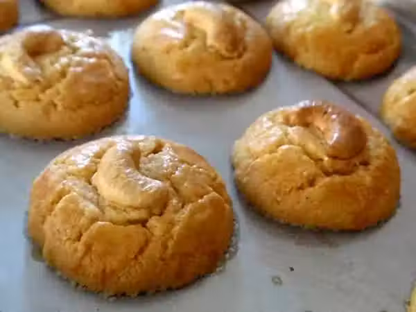 將 腰果放入烤箱裡,以160度烤約10分鐘。取出,舂成粉狀。 將腰豆粉,麵粉和發粉過篩,混合均勻備用。 將所有的牛油和糖用攪拌機打至乳白狀,加入雞蛋和瓦尼拉香精拌勻。 慢慢加入過篩後的粉類拌勻,揉成團。 將麵糰放入冰箱冷藏20分鐘左右。取出,杆成1cm厚片,用餅乾模印出。 排放在已鋪了不粘的烘培紙上,塗上蛋液,並將半粒腰果輕輕按在餅上,最後再塗上蛋液。 送入預熱烤箱,以150度烘烤15分鐘或呈金黃色即可。