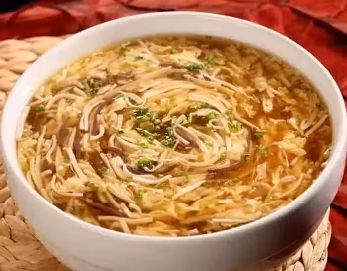 干髮菜1大匙 、紅辣椒3~4支 、金茸110公克 、香菇絲1/4飯碗 、胡蘿蔔絲1/5飯碗 、酸菜絲1/5飯碗(或榨菜絲)、沙拉油6大匙 、素高湯4飯碗 、太白粉水4大匙 ,