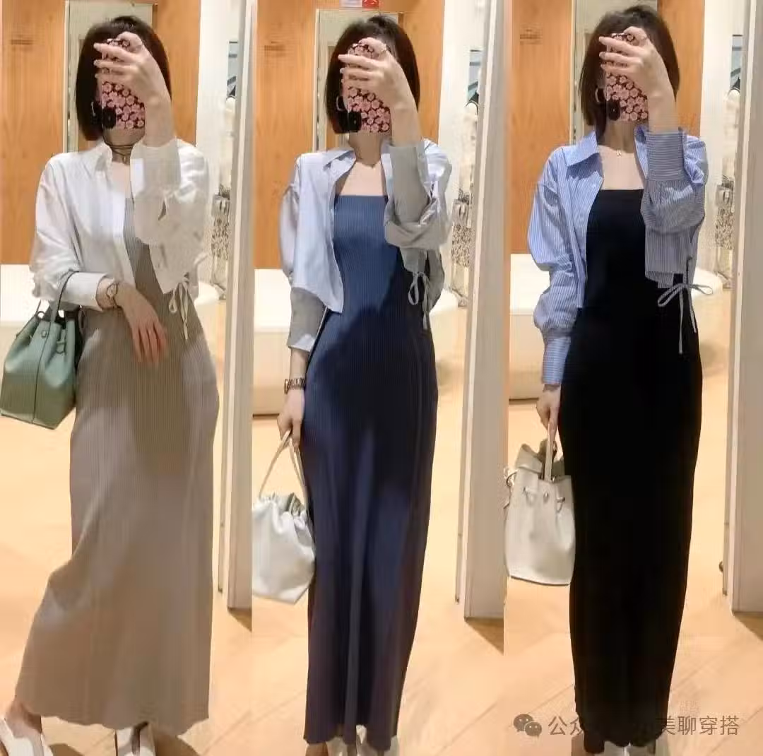 如果你喜歡優雅女人味,可以選擇一條唯美典雅的弔帶連衣裙,修身一些的設計更顯瘦顯高,這時候外面可以套一件短款的襯衫,這樣既打造出了完美3:7的身材比例,同時又增加了端莊感,非常有女人味。