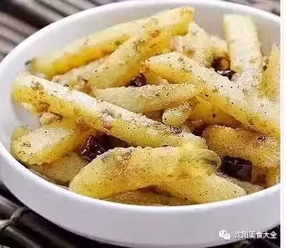 4、下入土豆條,繼續用小火煸3分鐘左右;