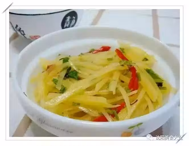 1、土豆去皮洗凈切成絲放入滾水中焯至斷生撈出放入涼開水中過涼控干水分。