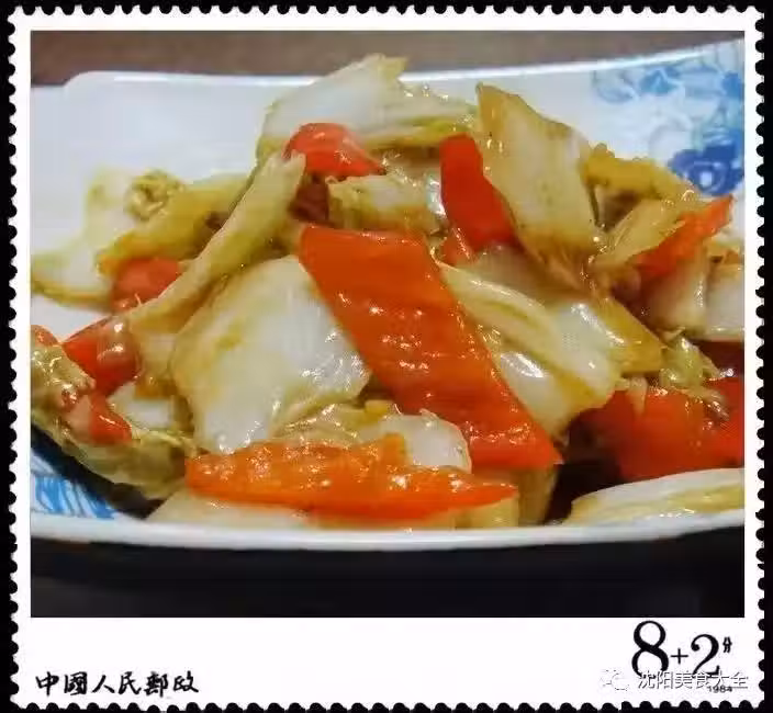 2、起鍋油熱後先放入薑末和紅尖椒然後倒入大白菜一起翻炒再加少許鹽、糖、醬油、香醋、蘑菇精調味最後勾芡出鍋。