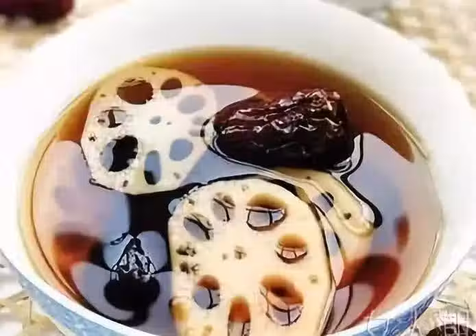 材料:蓮藕1斤,紅棗20粒,圓肉1兩,陳皮1片