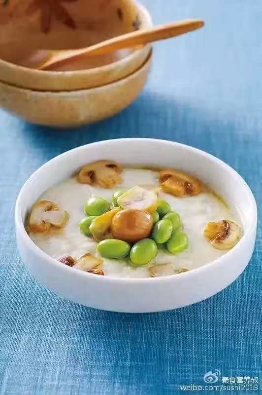 白木耳30克、栗子片適量、板豆腐3塊、松茸菇100克、燙熟青豆仁20克