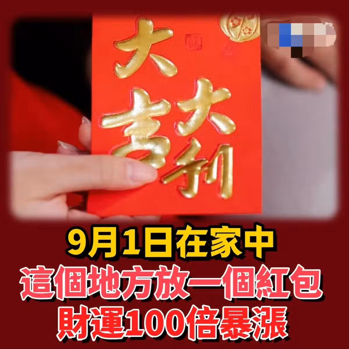 風水師偷偷透露:9月1日在家中這個地方,放一個紅包,竟能讓財運100倍暴漲,好運一路旺到年底!