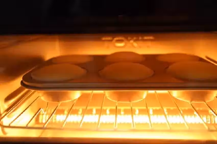 11. 蛋糕出爐後無需倒扣,晾架上晾涼後即可食用;如果用蛋糕模具加熱在蛋糕頂上烙上圖案,小蛋糕的顏值瞬間被提升了。