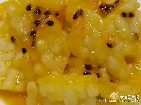 2、百香果 百香果醬拌勻,甜度不夠可加糖,然後進冰箱冰涼即可食用。