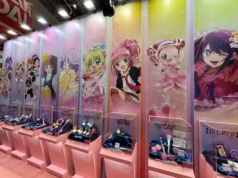 上面這道展示牆,展出了《魔法小天使》、《光之美少女》、《小魔女DoReMi》、《守護甜心!》等等各個年代的女童取向動畫,以及每部動畫衍生出來的周邊商品。