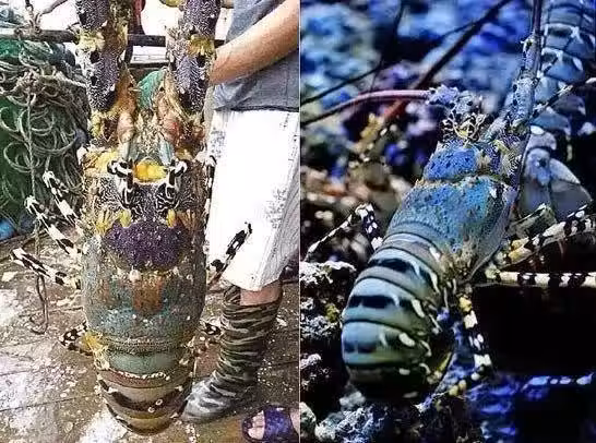 漁民捕到一頭六公斤重的「七彩龍蝦」,身體加觸鬚長達113cm,1天後竟賣出600000
