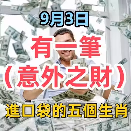 9月3日開始有一筆意外之財進口袋,恭喜五個生肖鈔票滾滾來