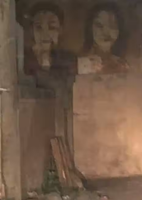 原來這是牆面上的裝飾藝術啦!只是疑似年代久遠,看上去有些許斑駁的痕跡,加上夜色昏暗,看上去才會超可怕!網友看完紛紛笑道:「吼,老夫妻怎麼在這邊嚇人!」、