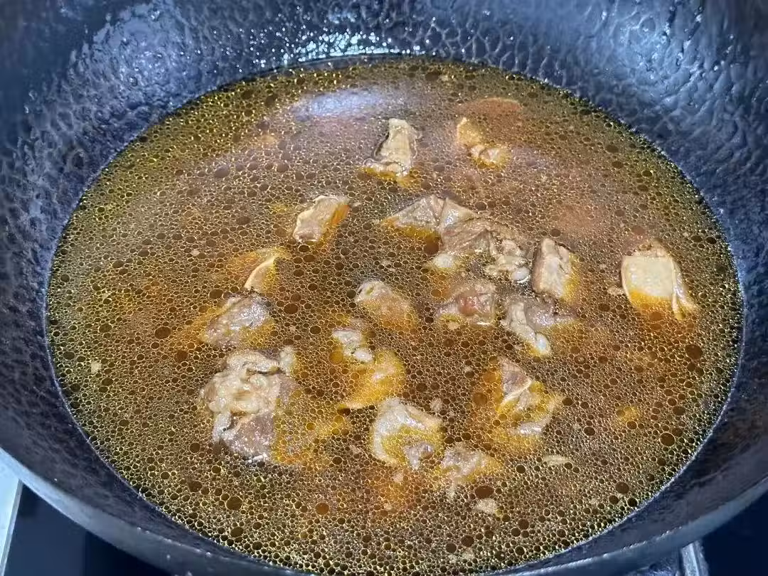 5、牛肉差不多燉爛了,加入土豆塊和剩餘的西紅柿,大火煮開轉中火燉10分鐘左右。