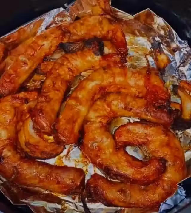 2、空氣炸鍋鋪上一層錫紙,把雞脖放入炸鍋180度10分鐘,翻面再來200度10分鐘即可。