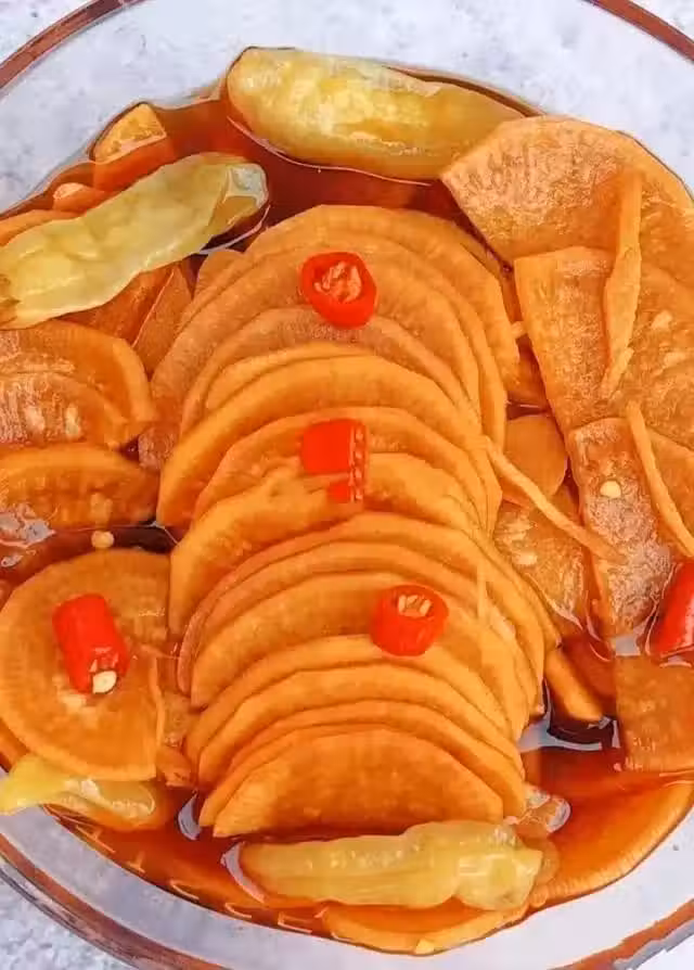 2、半碗泡椒+小半碗醋+小半碗味極鮮醬油+姜蒜小米辣+1大勺鹽+1大勺糖密封腌制12小時以上即可。