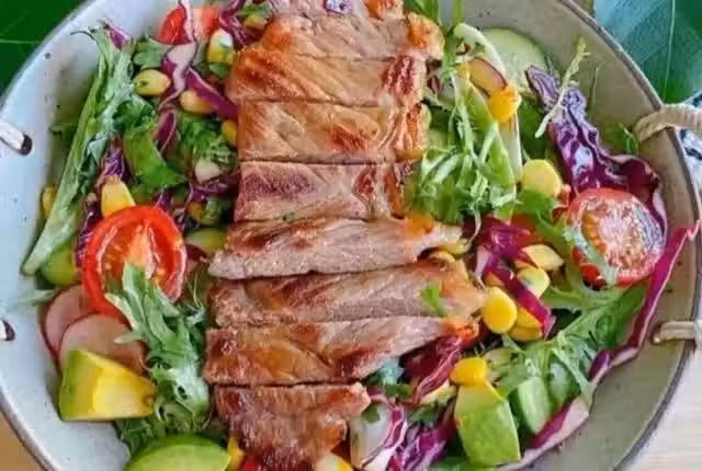 食材:牛排,黃瓜,紫甘藍,牛油果,小番茄,玉米粒,生菜