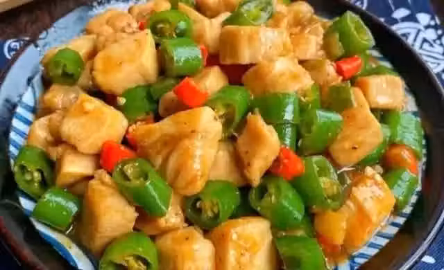 1、青紅椒切段,雞胸肉切丁+少許鹽+加1勺生抽+1勺料酒+少許黑胡椒+1勺澱粉,抓勻腌制10分鐘。