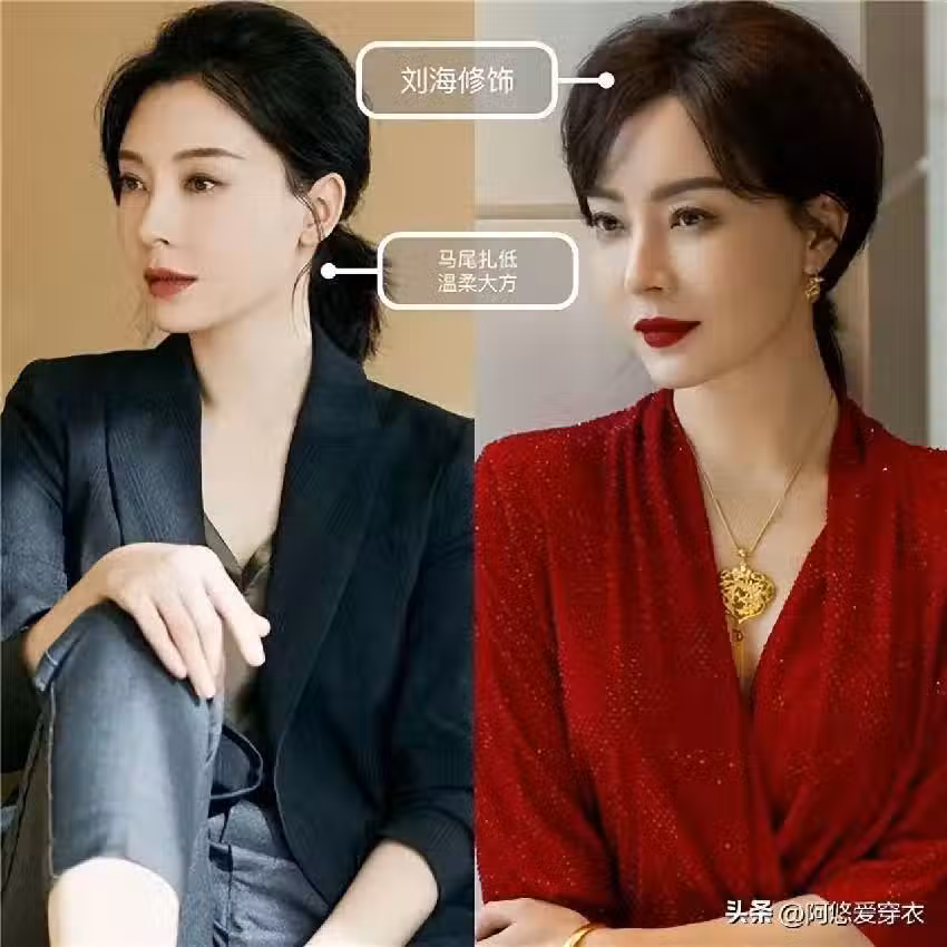 相比高馬尾,還是這種低扎發會更適合大多數女人,因為低扎發不會像高馬尾那樣扎得很緊,這種低扎發最關鍵的一點就是自然感和慵懶感,隨便將頭髮紮起來,然後將頭頂還有我們頭顱兩側的頭髮撥得蓬鬆一點,這樣就會顯得頭型更飽滿,臉也會小一圈兒。