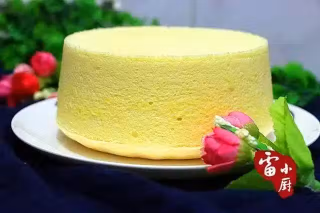9、出模後放兩分鐘,蛋糕周邊就會自然的與模具邊緣分開,此時只要輕輕的將蛋糕往上拔,倒扣在盤子裡就完美的脫模了。也不會回縮。