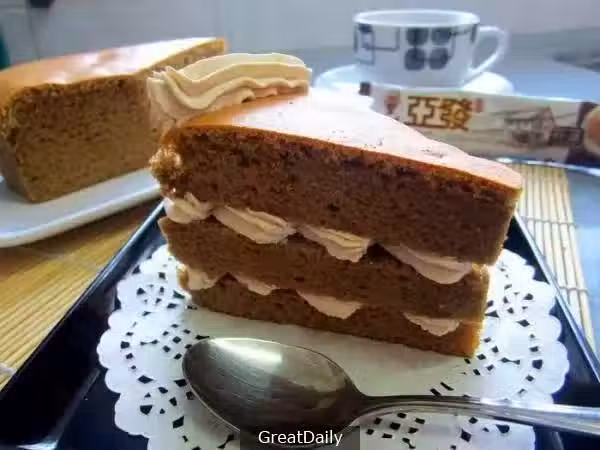 9)待涼後,切片塗上或擠上咖啡鮮奶油,即可享用。•做蛋糕,關鍵在打蛋白和拌麵糊,蛋白蛋黃一定要分出乾淨,蛋白不能沾到水,油,蛋黃,否則打不起。拌麵糊要輕手,你能亂亂拌,要用橡皮刀上下的拌,否則將消泡,蛋糕出來後就會塌,失敗了。•烤箱溫度共參考,每個烤箱不同,得自己拿捏