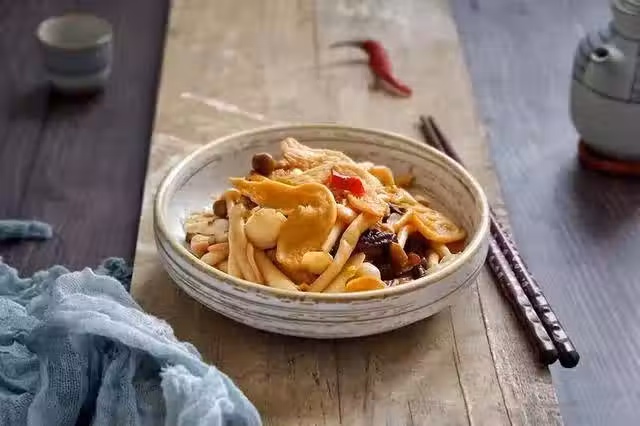 豆翅50克,海鮮菇80克,蟹味菇80克,香菇5朵,辣椒3個,生抽1湯匙,生薑、素蚝油、鹽適量