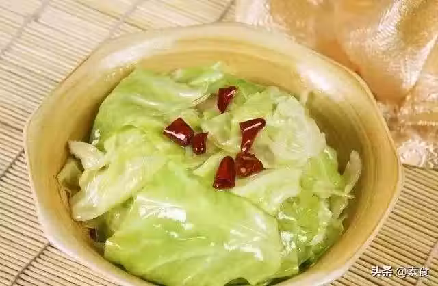捲心菜500g、油適量、鹽適量、辣椒適量、味精適量、醋適量、糖適量