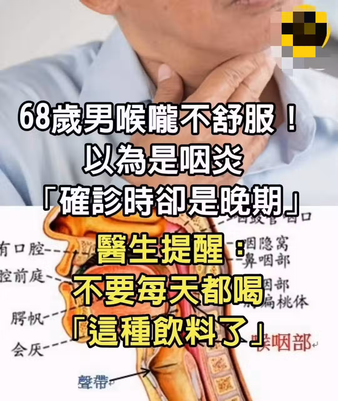 68歲男喉嚨不舒服!以為是咽炎「確診時卻是晚期」 醫生提醒:不要每天都喝「這種飲料了」