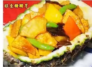 甜豆,木耳,芋頭片,紅椒,黃椒,鳳梨 半顆(挖好果肉備用),鳳梨罐頭,薑末