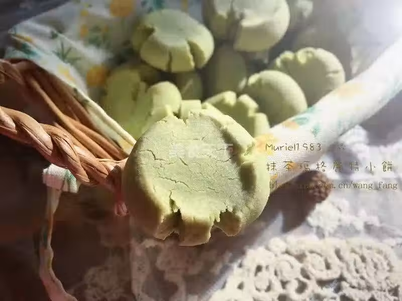 材料:玉米澱粉100g,低筋麵粉95g,山政抹茶粉5g,椰子油100g,糖粉40g,鹽1g