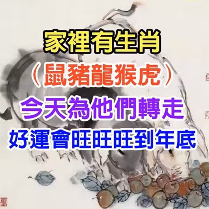 家裡有生肖(鼠豬龍猴虎)今天為他們轉走,好運會旺旺旺到年底