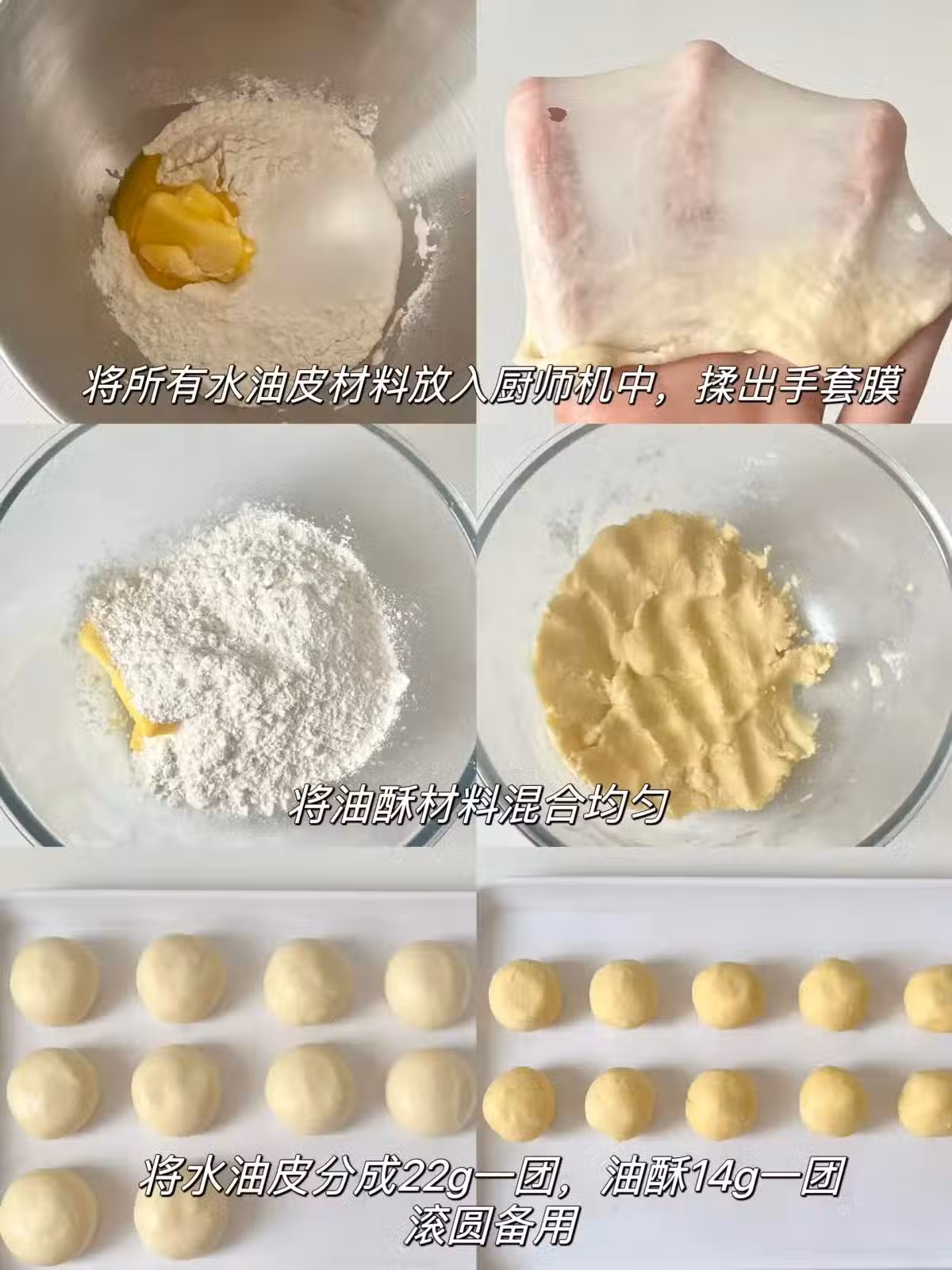 3️⃣將水油皮擀開,放入油酥包起來。收口朝上,擀成牛舌狀,自上而下捲起來
