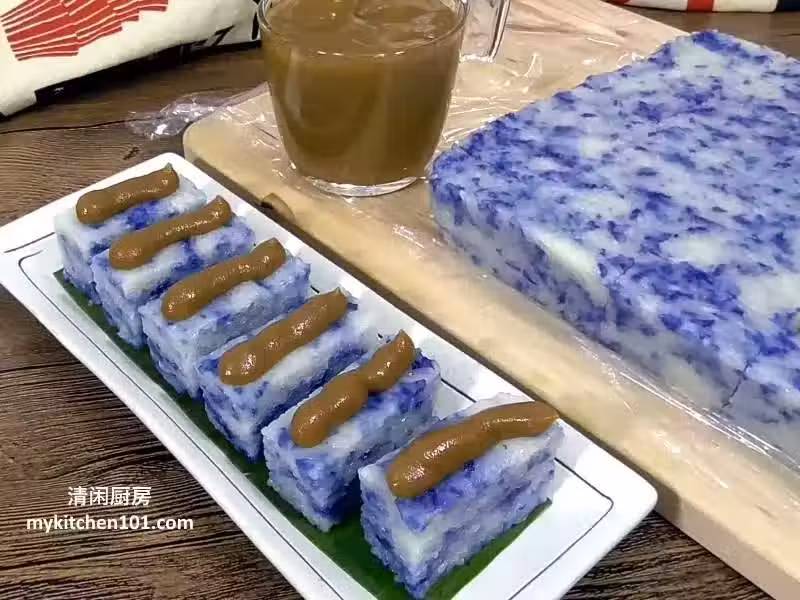 1 把木薯澱粉加入刨木薯絲拌勻。加入鹽和糖,拌至糖溶化。加入蛋,拌至完全混合。慢慢的把濃椰漿加入,拌至完全混合。