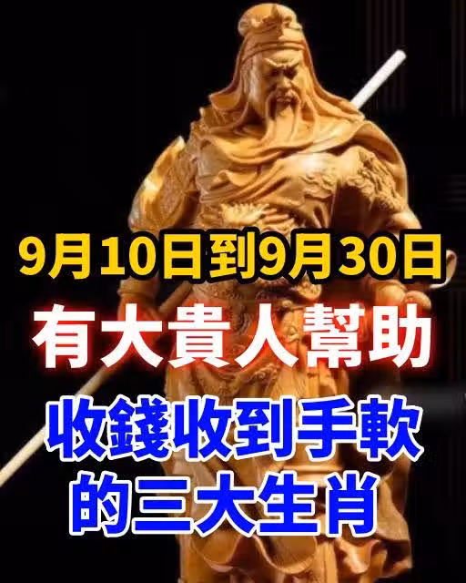 9月10日到9月30日,有大貴人幫助,收錢收到手軟的三大生肖