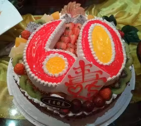 陪她公公喝酒聊天,氣氛很融洽,飯吃的差不多的時候,他們把早已經準備好的蛋糕,拿了出來。