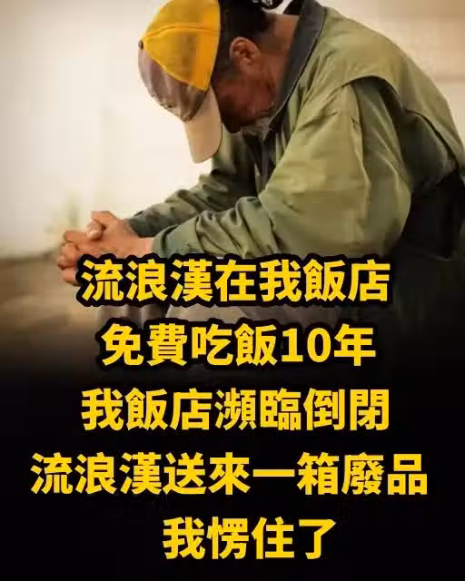 流浪漢來我飯店免費吃飯10年,我飯店瀕臨倒閉,流浪漢送來一箱廢品,我愣住了