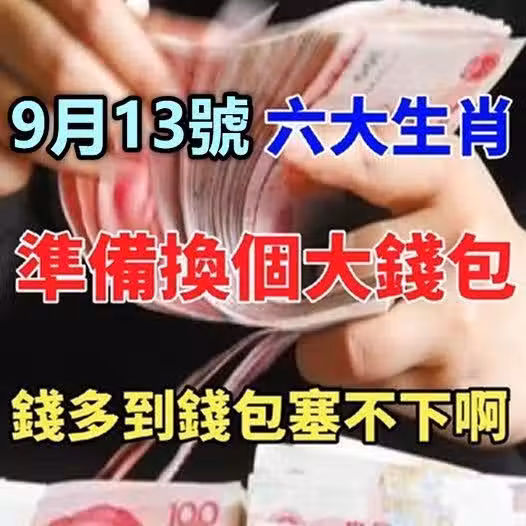 9月13號:六大生肖準備換個大荷包,錢多到錢包塞不下啊