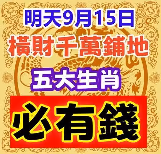 今天9月15日橫財千萬鋪地,必有錢的生肖