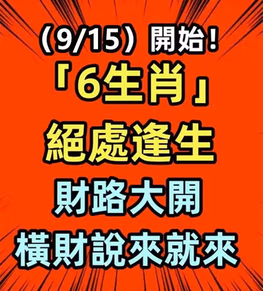 (9/15)開始「6生肖」絕處逢生,財路大開,橫財說來就來