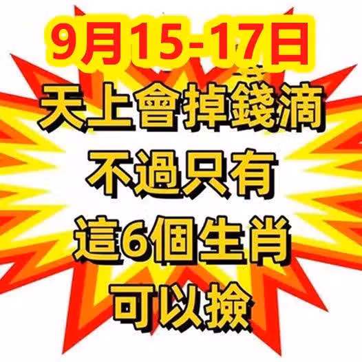 9月15 到 17日天上會掉錢滴,不過只有這6個生肖可以撿!