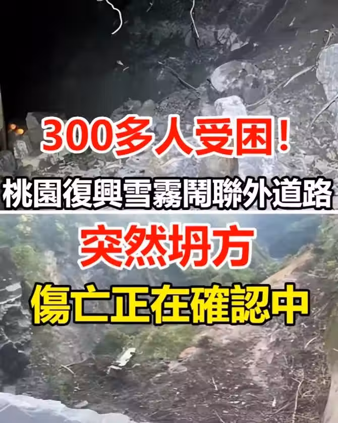 桃園市復興區雪霧鬧聯外道路今天早上7時24分突然坍方中斷,300人受困等待撤離。
